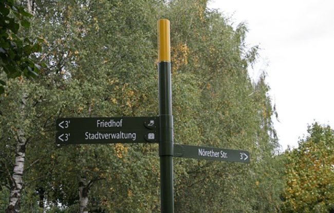Description Le design soigné et épuré du mât de signalisation Lignum en fait un objet urbain attrayant et efficace. Il se compose d’un mât, de flèches directionnelles et d’un fanion décoratif. Afin de rendre cette signalisation plus visible dans le paysage urbain, il est possible de choisir une couleur différente pour le mât et le…