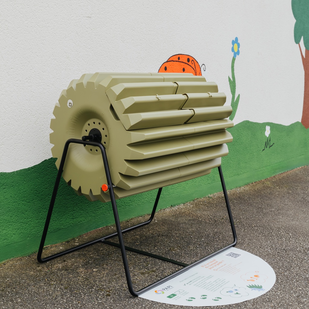 Inspiré de la roue à aubes, le Composteur Hérisson brasse le compost et produit un mélange homogène qui accélère sa maturation. Son design hérissé lui confère un caractère compact et robuste, à l’épreuve des conditions extérieures. Équipé d’un dateur et de deux compartiments étanches et anti-intrus, il offre un compost sans odeur toute l’année.